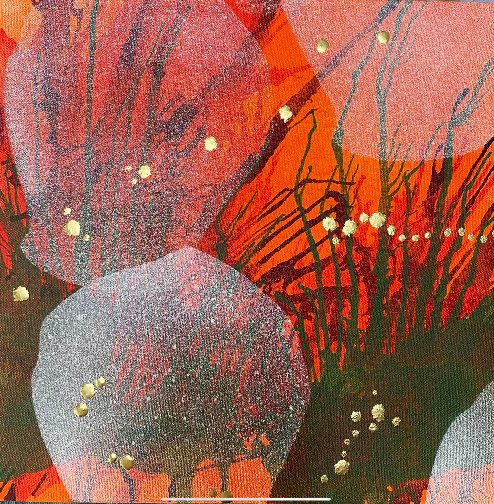 In 2021, Michi received a thyroid cancer diagnosis and had to undergo surgery. As a result, she lost her voice, and couldn’t speak for a year. She turned to art, throwing herself into creating intuitive and gestural art. Painting allowed her to express what was in her heart when no one else could hear her.